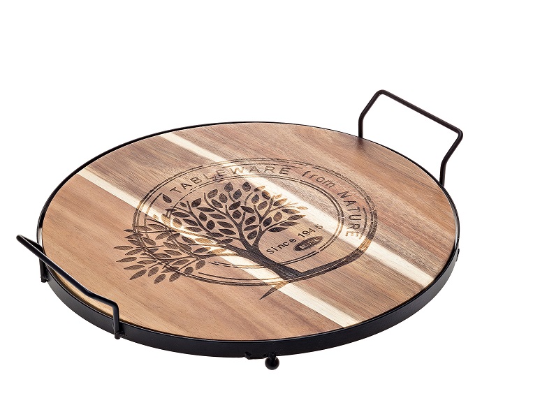Tagliere Rotondo In Acacia C/Manici Cm.35 H.7 S5030